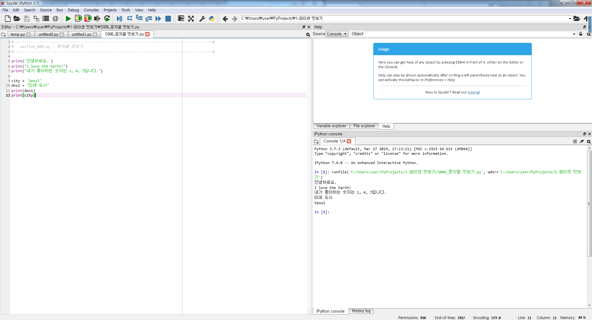 | Intro to Python (1) : 파이썬 시작, 환경설정, 주피터 사용법 (0) | 2019.07.16 |