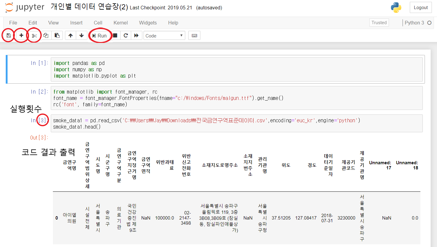 잘 따라오셨나요 ㅎㅎ 다음 포스팅에서는 쥬피터 노트북에 대한 좀 더 세세한 사용팁들과 '마크다운' 활용 방법에 대해 간단히 설명하도록 하겠습니다. :D