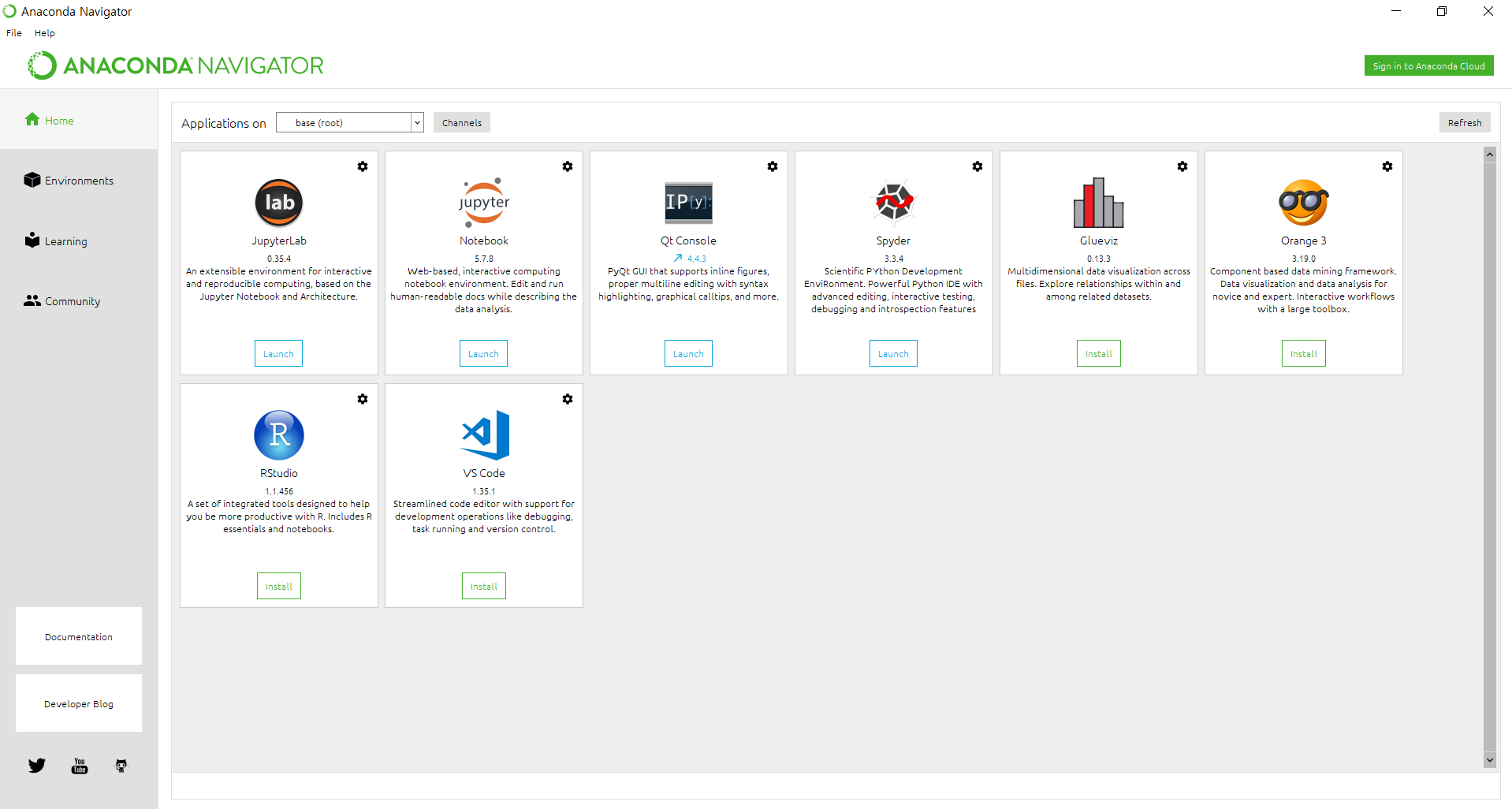 설치가 완료되면 Anaconda Navigator를 켜보자. 아래 사진에서 우리가 주목해 볼 것은 Jupiter Notebook이다.