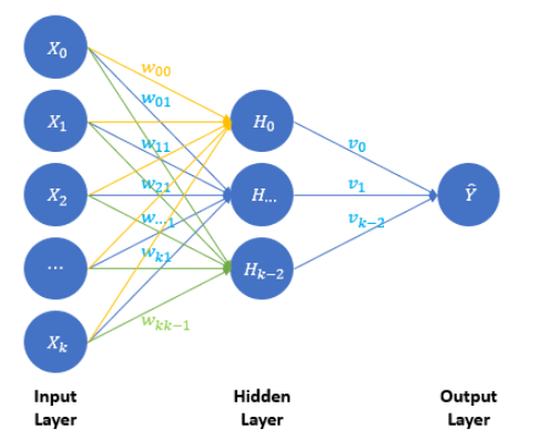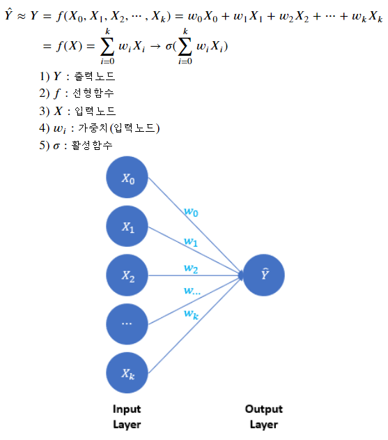 위 표현식을 간단하게 표현하면 아래 그림과 같은데, 각 노드와 가중치가 반복적으로 곱해지고 더해지며 predicted Y를 구하는 것이다.