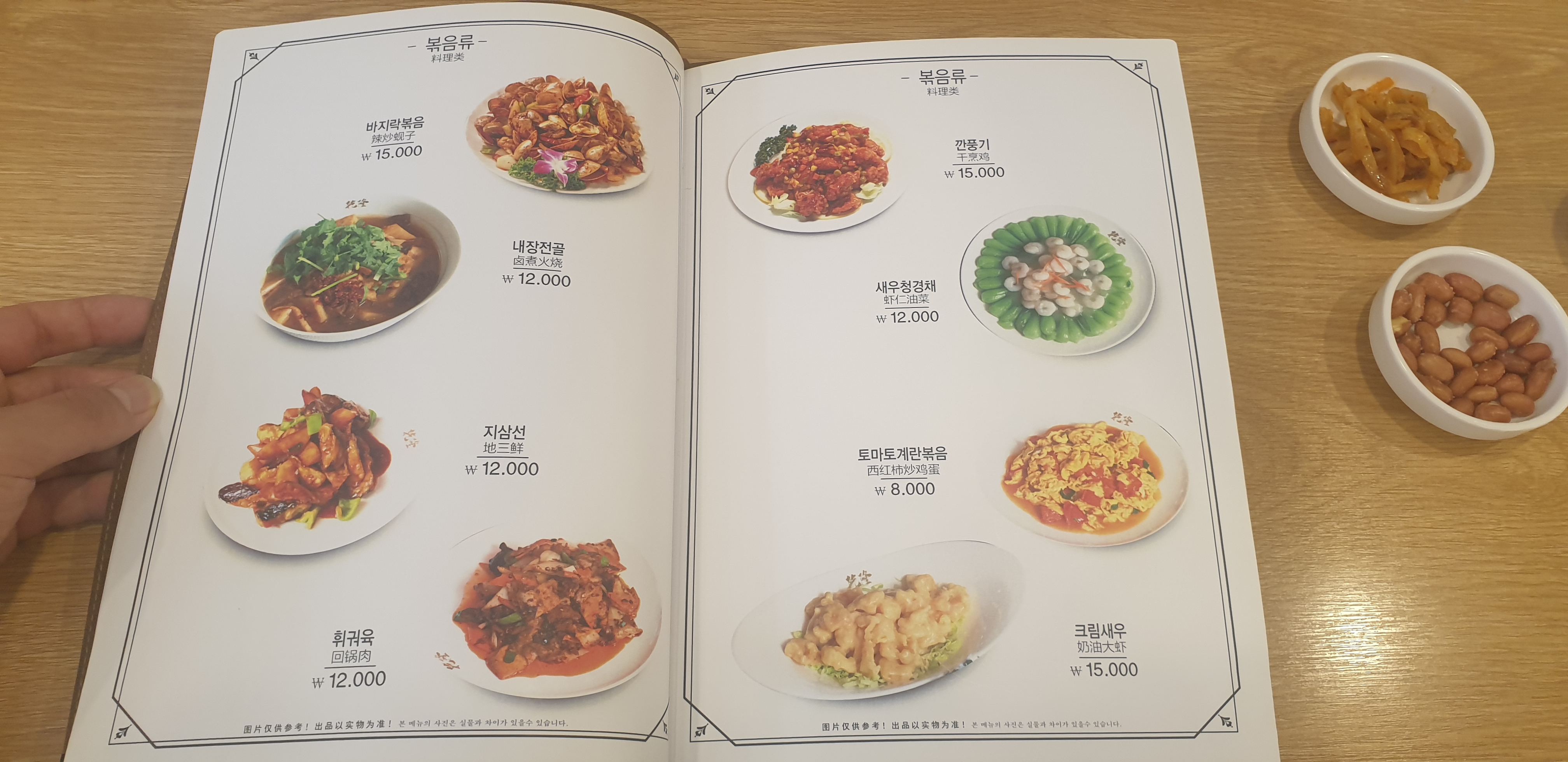 기본찬은 여느 중국집에서 나오는 것과 같이 짜사이와 볶은 소금 땅콩이 나왔습니다. 두 반찬 모두 밥에 그냥 먹어도 맛있을 정도로 밥도둑입니다.