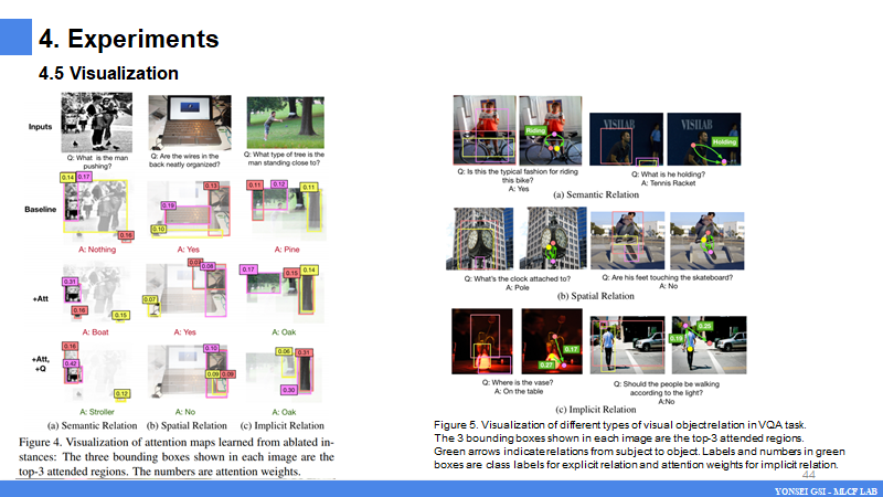 - 그림 5에서 놀라운 점은 학습된 implicit relations가 spatial, semantic의 상호작용까지 포착 가능하다는 점입니다